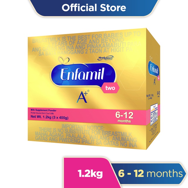Enfamil A Two Milk Supplement Powder 6-12 Months 24Kg 288500. 0 - 12 months. The World Health Organization WHO recommends exclusive breastfeeding for the first 6 months and continued breastfeeding for as long as possible.