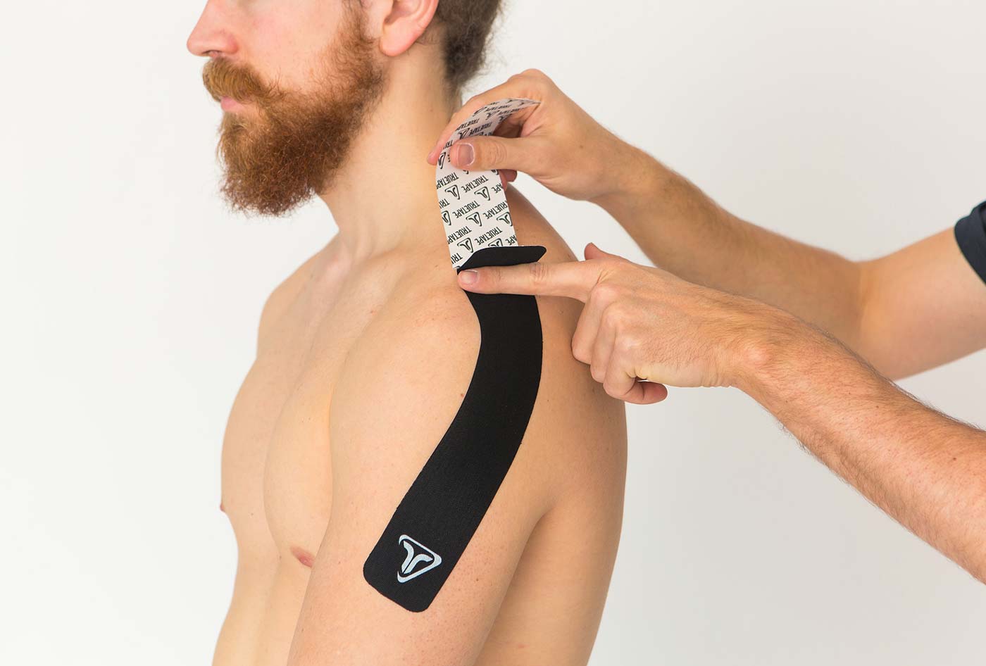 Die Basis der zwei Zügel wird circa drei Zentimeter unterhalb des Deltamuskels am betroffenen Oberarm angesetzt. Zudem sollte die Haut vor dem Aufkleben des Tapes trocken sauber und fettfrei sein.