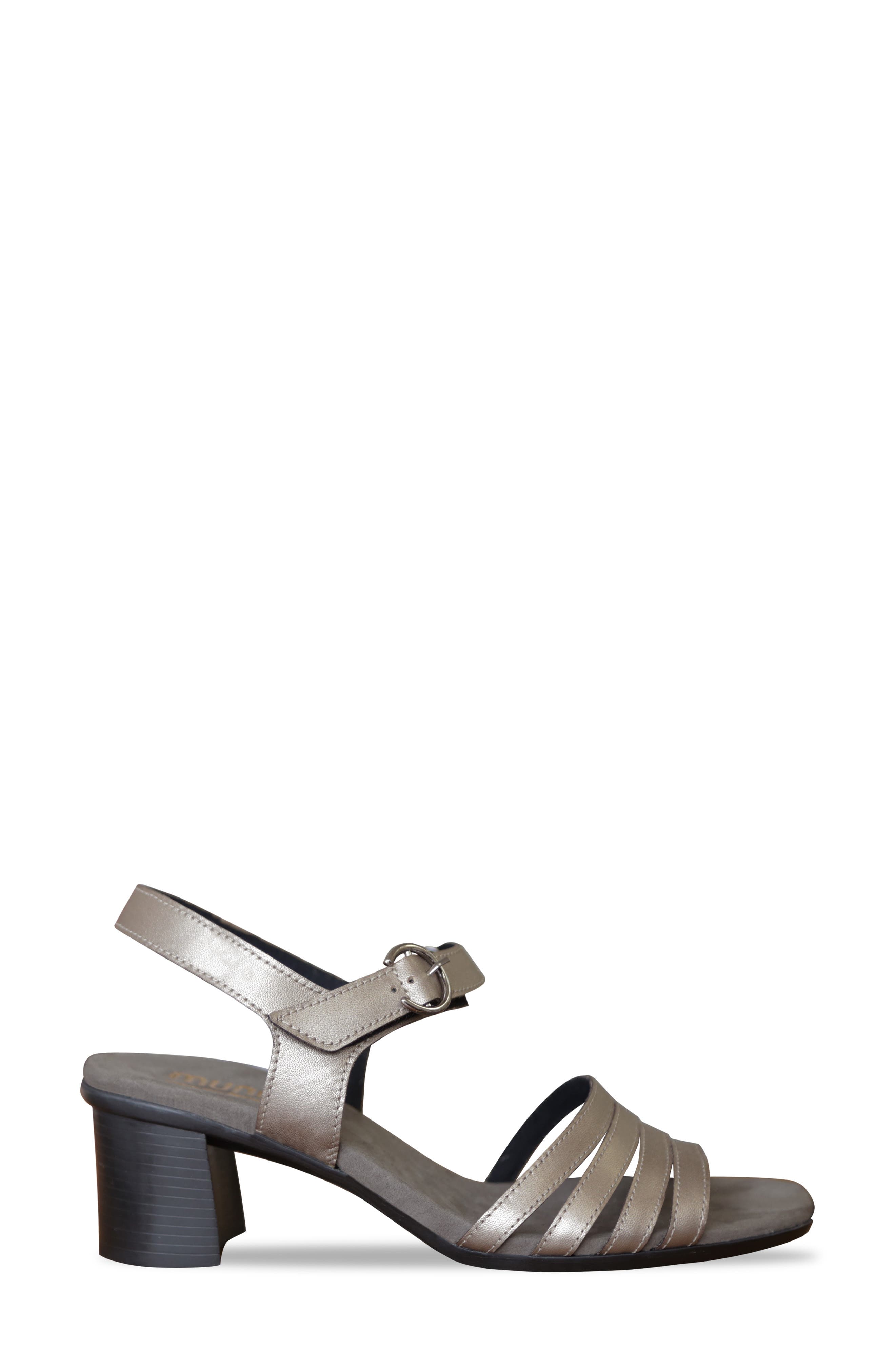 Hallie sandal. - Suede and leather upper. Patricias collection embraces refined feminine style with a touch of whimsy and are always comfortable to wear. A stunning Summer sandal that looks fabulous with trousers jeans or dresses Hallies Suede and Muted Metallic Leather uppers feature a delicate ankle strap with adjustable buckle and secure heel support while below sits a pretty patterned low wedge heel.